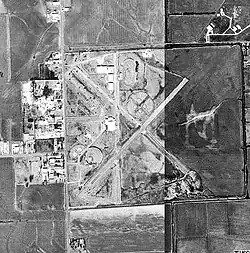 After the war ended, the airfield was turned over to the City of Greenville and it became the city municipal airport. Southern Airways began scheduled passenger airline service during the early 1950s with Douglas DC-3 prop aircraft flying daily round trip routings of Memphis - Greenville - Vicksburg - Jackson, MS - Natchez - Baton Rouge - New Orleans and also Memphis - Greenville - Vicksburg - Jackson, MS - Laurel - Hattiesburg - Mobile.[1] By 1962, Southern was operating "Aristocrat" service into the airport with a Martin 4-0-4 prop aircraft flying a round trip routing of Bristol/Kingsport/Johnson City - Knoxville - Nashville - Jackson, TN - Memphis - Greenville - Monroe, LA - Baton Rouge - New Orleans in addition to its other flights serving Greenville.[2] Southern subsequently moved its flights to the Mid Delta Regional Airport where in later years it operated Douglas DC-9 jet service.[3] The municipal airport also had general aviation service until it was closed about 1970 as the airfield had relatively short runways and was being encroached by the city.