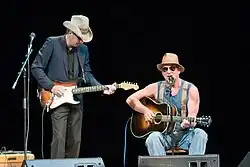 During the 1980s Brown toured and had recurring performances on A Prairie Home Companion.[3] Brown self-published two albums, 44 & 66 and The Iowa Waltz. Bob Feldman and Susan Ode founded the record company called Red House Records after producing a sold-out concert at the Guthrie Theater in Minneapolis, Minnesota, in 1990. Brown became its first recording artist.[4] Brown has recorded two dozen albums. In 1986 he released an album called Songs of Innocence and of Experience based on poems by William Blake. His album One Big Town (1989) won an Indie Award from the National Association of Independent Record Distributors[5] and marked the beginning of Brown's long collaboration with Iowa guitarist Bo Ramsey.