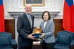 In January 2019, during the 2018–2019 United States federal government shutdown, Gianforte said that he "didn't come here to Washington to shut the government down" but expressed support for Trump and blamed Speaker of the House Nancy Pelosi for the shutdown.[164] He opposed the impeachment inquiry against Donald Trump over the Trump-Ukraine scandal, calling it a "sham",[165][166] and voted against both articles of impeachment against Trump (abuse of power and obstruction of Congress).[162] Gianforte voted against a measure to bar Trump from initiating military action against Iran without congressional consent;[162] a spokesman for Gianforte said in 2019 that he would not "discuss the conditions under which he would vote in favor of authorizing military force against Iran because talking about it strengthens the position [of] Iran's regime."[167] Gianforte voted against the 2020 House Democrats police reform bill; against restoring part of the Voting Rights Act; against universal background checks for gun purchases; and against the 2020 D.C. statehood bill.[162] In line with Trump's position, he voted against legislation to block U.S. arms sales to Saudi Arabia and the United Arab Emirates,[162] but he opposed Trump's decision in 2019 to withdraw U.S. forces from northern Syria, where they had been stationed as part of U.S. efforts to block Turkish attacks on Kurdish forces.[168] Gianforte voted against legislation in 2019 to raise the federal minimum wage to $15 per hour.[162][169] He voted against legislation to overturn Trump's emergency declaration to divert federal appropriations for construction of a border wall.[162][170] He opposed federal action to combat climate change and supported Trump's withdrawal of the U.S. from the Paris Agreement on climate change,[171] voting against legislation to block Trump from withdrawing from the agreement.[162] Gianforte voted against reauthorizing the Export–Import Bank and against a bill allowing the government to negotiate lower prices for prescription drugs.[162] He voted for the United States–Mexico–Canada Agreement on trade.[162]