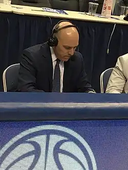 ![]() Greg Wrubell during postgame broadcast December 2019 | |