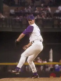 Selected to the All-Star team in 1990, Olson set a club record of 37 saves during the season and collected 31 and 36 in the next two years. On July 13, 1991, Olson combined with 3 other Baltimore pitchers in a no-hitter against the Oakland Athletics.[7] In August 1993, Olson suffered a torn elbow ligament injury that sidelined him for the rest of the year. He finished with 29 saves and a career low 1.60 ERA, but Baltimore opted not to take a risk with him and signed Lee Smith as their new closer. Olson struggled with a succession of injuries over the next years, playing for seven different teams from 1994 to 1997.