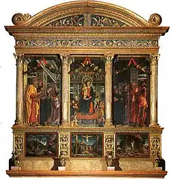 He then served as secretary to his uncle Antonio at the Council of Basle. From 1448 he was an abbot at the Basilica of San Zeno, Verona.[1] There he received the visit of another pupil of Vittorino, Iacopo da San Cassiano.[5] He commissioned the celebrated San Zeno Altarpiece from Andrea Mantegna.[6] He was nominated as bishop of Padua in 1459, but lost out to Pietro Barbo when Pope Pius II refused to accept the Venetian Senate's choice.[7]