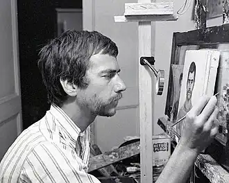 ![]() Gillespie with self-portrait in his Rome studio, c. 1969 | |