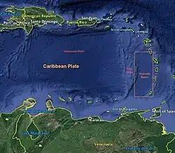 - ^ Pérez, Omar J.; Bilham, Roger; Bendick, Rebecca; Velandia, José R.; Hernández, Napoleón; Moncayo, Carlos; Hoyer, Melvin; Kozuch, Mike (2001-08-01). "Velocity field across the Southern Caribbean Plate Boundary and estimates of Caribbean/South-American Plate Motion using GPS Geodesy 1994-2000". Geophysical Research Letters. 28 (15): 2987–2990. Bibcode:2001GeoRL..28.2987P. doi:10.1029/2001gl013183. ISSN 0094-8276.