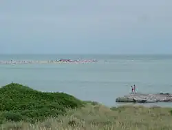 The area surrounding Grenen is the place with the greatest number of observed bird species in all of Denmark.[1] Birdwatchers regard it as the best spot in Northern Europe, for observing birds of prey during their spring migrations.[2] Birds often gather here before crossing the seas to Bohuslän in Sweden. There are more migratory birds near Grenen when the wind is from the south-east. If the wind is from the south-west, many birds choose a route across Funen and Zealand instead. The annual Skagen Birding Festival has been celebrated here since 2005, attracting more than a thousand visitors and participants.[3]