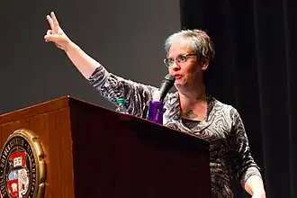 As a speaker, she is a member of the Speakers Bureau for the Secular Student Alliance and the Center for Inquiry.[7] She was a speaker on the Diversity in Skepticism panel at The Amaz!ng Meeting in July 2011, the Reason Rally in 2012,[12] and the 50th annual convention of American Atheists in 2013.[13]