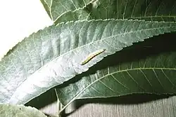 The larvae feed on the foliage of Carya illinoinensis.[4]