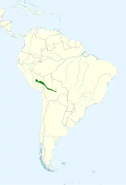 It is endemic to humid Andean forest from Cusco in Peru to La Paz in Bolivia.