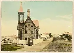 Grey Lynn had a number of brickyards, particularly along the Great North Road.[20] In 1871, Thomas Faulder was appointed night soil contractor for Auckland, and used his land between Surrey Crescent and Tuarangi Road for its disposal.[21][22] During the early 1870s, there were numerous complaints over the use of this land for this purpose, including to the Central Board of Health in 1874.[23] The depot was relocated to Avondale in 1875.[24] In 1906, James Tattersfield set up a mattress factory on the corner of Sackville and Richmond Road.[25] The factory was later expanded to produce carpets.[25]
