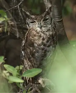 The greyish eagle-owl or vermiculated eagle-owl (Bubo cinerascens) is a rather large owl of the northern part of sub-Saharan Africa. It was previously regarded as the northern subspecies of the spotted eagle-owl (Bubo africanus).