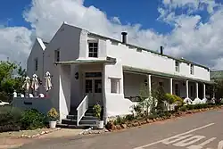 The entrance to the town was not originally where it is today for the road came directly from Genadendal over the hill, and past Boschmanskloof, entering the town at the intersection of Main Road and Ds Botha Street. There, the De Villiers family built a trading store in 1860, as well as several communion rooms used by Dutch Reformed Church members who came to town for communion once a month. The town's first post office was opened in the building where The Post House pub trades from today.