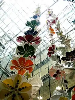 Their installation for a new Fosters and partners development in London's Spitalfields launched in 2007. Occupying the full height of the building's central 10-storey atrium it uses hundreds of flowers, hidden within a seemingly sober column suspended within the space, to allow the building to bloom into life. They respond to the motion of those passing by, opening and closing, thus allowing every viewer interaction and influence over their environment.