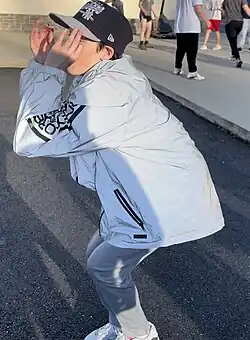 The Griddy is a dance move in which a person alternatingly taps their heels, either in place or while walking, while swinging their arms back and forth. Created by high school footballer Allen Davis in 2018, his dance went viral on TikTok in 2019. Minnesota Vikings wide receiver Justin Jefferson has added "throw[ing] your B's" to the dance;[1] this move looks similar to forming "ok" symbols around the eyes.[2]