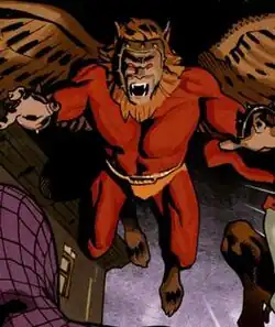 | Abilities | Superhuman strength, speed, agility and durability Enhanced reflexes/reactions Flight via wings Sharp claws and teeth Spiked prehensile tail Telepathic ability to command birds |
