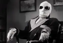 ![]() Griffin, portrayed by Claude Rains in the 1933 film in an invisible state wearing an outfit to enable others to see him | |