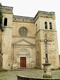 Located under the castle terrace, the collegiate church was constructed between 1535 and 1539 at the request of Louis Adhémar. The Renaissance façade is flanked by two square towers and a Gothic rose window. Inside is a 17th-century altar and organ loft. On the floor in front of the altar is a marble funerary stone marking the sealed entrance to the tomb of Madame de Sévigné.