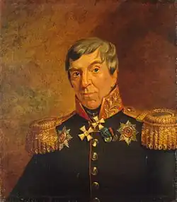 | Awards | Order of St. George third class, Order of St. Anne first class with diamonds, Order of St. Vladimir second class, Cross of Eylau, Prussian Red Eagle, Golden Sword "for bravery" with diamonds |