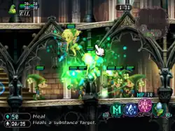 GrimGrimoire is a two-dimensional (2D) side-scrolling real-time strategy (RTS) video game; players take the role of trainee witch Lillet Blan, who completes both story missions and optional challenge levels.[3][4] Each main level is bookended by story cutscenes, with the scenario taking place over a repeating five-day period.[5] During the RTS segments, the player takes the role of Lillet Blan, who directs the action while the multi-floored battle area is shown from a side-scrolling perspective.[3][5] All actions take place in real time, though gameplay can be paused for the player to issue commands.[4] The environment and enemy movements beyond where the player has explored are obscured by a fog of war.[6] There are three difficulty settings: "Sweet", "Easy" and "Normal".[5]