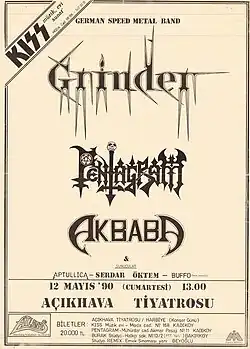 Grinder was a late 1980s/early 1990s speed metal/thrash metal[1] band from Germany. They released three full-length albums and one EP before disbanding. Grinder was the first international heavy metal act to play in Turkey, on May 12, 1990, at the Open Air Theater in Istanbul.