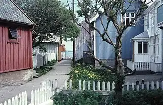 The old schoolhouse has been turned into an inn and post office, and one of the boathouses in the harbour and the temperance movement's lodge serves as community houses.