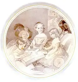 During Dickens's 1842 trip to the United States, he and Poe met twice in Philadelphia.[16] Dickens had brought the portrait of his children and Grip. Poe was said to be "delighted" to learn that Grip was based on a real bird.