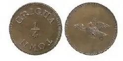 Griqua coinage was introduced to Griquatown, South Africa circa 1817-1818 by the London Missionary Society. This was the first known issue of currency by Christian missionaries in South Africa. The coinage was referred to as tokens by the London Missionary Society and was minted in four denominations: 1/4 and 1/2 pence in copper, and ɪɪɪɪɪ(5) and 10 pence in silver. At the meeting of 7 August 1813 various other issues were discussed, including coinage, where