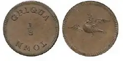 The Griqua coinage was the first community coinage in South Africa[1] and was introduced by the London Missionary Society.