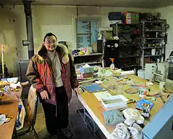 In 2009, artist and Grise Fiord resident Looty Pijamini was commissioned by Nunavut Tunngavik Incorporated to build a monument to commemorate the Inuit who sacrificed so much as a result of the Government's forced relocation programme of 1953 and 1955. Pijamini's monument, located in Grise Fiord, depicts a woman with a young boy and a husky, with the woman sombrely looking out towards Resolute Bay. Amagoalik's monument, located in Resolute, depicts a lone man looking towards Grise Fiord. This was meant to show separated families, and depicting them longing to see each other again.[14] The Grise Fiord monument was unveiled by John Duncan, at the time, Minister of Aboriginal Affairs and Northern Development and Federal Interlocutor for Métis and Non-Status Indians, on September 10, 2010.[15][16]