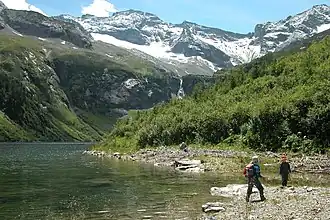 The Hafner massif rises between the Radstadt Tauern and the Mur valley of the Salzburg Lungau region in the north and the Carinthian Malta valley in the south. It comprises Kleiner Hafner (3,018 m (9,902 ft)) and Großer Sonnblick (3,030 m (9,940 ft)) subpeaks, lying just to the southeast.[3] In the south, the Malta valley leads to the Reißeck Group, while in the east, Katschberg Pass separates it from the neighbouring Gurktal Alps.
