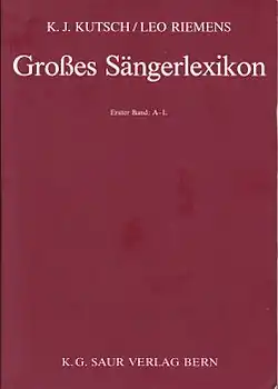 - ^ Forbes, Elizabeth (October 1988). "Reviewed Work: Grosses Sängerlexikon by Karl J. Kutsch, Leo Riemens". Music & Letters, Vol. 69, No. 4, pp. 538–540. JSTOR 854924 (registration required).