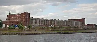 According to the heirs of the building's architect, Martin Elsaesser (died in 1957), the external appearance of the Großmarkthalle may not be changed according to moral rights, so that the planned alterations would require their agreement until such rights expire 70 years after the death of Elsaesser.[3][4] This view may be inaccurate, since it is now known that there is 1932 contract between Elsaesser and the city of Frankfurt that permits alterations to the structure of the hall.[5]