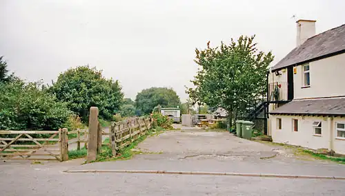 A passing loop and additional platform were added in 1911. On 1 January 1923, services were taken over by the London, Midland and Scottish Railway. Further modifications to the layout took place in 1947, the loop and platforms were extended to accommodate longer trains.[7][9] As lorries, buses and cars became more readily available, the use of the station gradually decreased.[8] The report by Richard Beeching recommended the closure of the line through Groeslon. In the resultant Beeching cuts, Groeslon stopped receiving goods via railway on 4 May 1964, and closed completely on 7 December 1964.[7][8]