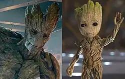 ![]() Forms of Groot as depicted in Guardians of the Galaxy (2014) (L) and Guardians of the Galaxy Vol. 2 (2017) (R) | |