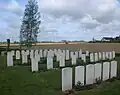 Grootebeek British Cemetery is a Commonwealth War Graves Commission (CWGC) burial ground for the dead of the Western Front of the First and Second World War. It is located near Reningelst in the municipality of Poperinge in western Belgium. The cemetery is surrounded by farmland and can only be reached via a 100-metre grassed path which is not suitable for vehicles.