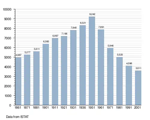 This decline is largely due to the massive emigration that began in the 1950s and continues unabated, effectively emptying the town (the current population is about 3,600, compared to 9,242 recorded in the 1951 census), a trend common to many inland towns in Calabria.