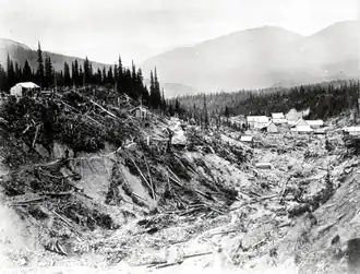 The Grouse Creek War was a mining conflict that took place in 1867 near the gold-rush town of Barkerville in the Cariboo region of British Columbia. The conflict was fought mainly over the mining rights for Grouse Creek, a small stream about 5 kilometers south of Barkerville, where a large amount of gold was discovered in it around 1861. The total value of the gold collected from the creek equated to around $4 million, which is equal to about $256 million in 2024.[1]