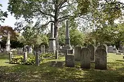 Grove Street Cemetery or Grove Street Burial Ground is a cemetery in New Haven, Connecticut, that is surrounded by the Yale University campus. It was organized in 1796 as the New Haven Burying Ground and incorporated in October 1797 to replace the crowded burial ground on the New Haven Green. The first private, nonprofit cemetery in the world, it was one of the earliest burial grounds to have a planned layout, with plots permanently owned by individual families, a structured arrangement of ornamental plantings, and paved and named streets and avenues. By introducing ideas like permanent memorials and the sanctity of the deceased body, the cemetery became "a real turning point... a whole redefinition of how people viewed death and dying", according to historian Peter Dobkin Hall.[3] Many notable Yale and New Haven luminaries are buried in the Grove Street Cemetery, including 14 Yale presidents; nevertheless, it was not restricted to members of the upper class, and was open to all.[3]