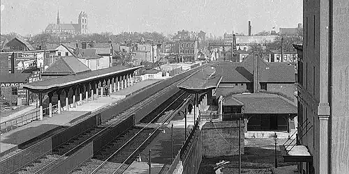 ![]() Grove Street station shortly after the tracks were elevated in 1922. | |||||||||||||||||||||||||