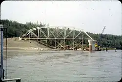 - 1958: Bridge crossing the Wapiti River opens. Ribbon cutting was held on 28 November 1958. Lumber companies had erected bridges in the past, but each spring they were swept away. Proponents of the bridge promoted the importance of it in the development of a short truck-route link with Vancouver and the United States.[4]