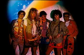 ![]() Gruppo Italiano in 1985; from left to right: Roberto "Bozo" Del Bo, Raffaella Riva, Chicco Santulli, Patrizia Di Malta och Gigi Folino | |