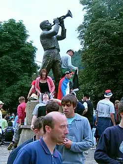 The Guča trumpeter statue | |