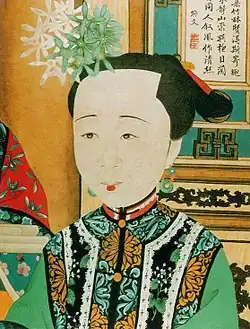She was descended from Manchu family from the Silin-Gioro (西林覺羅 Xilin Jueluo) clan.[2] There had been some debate as to whether or not she was of Manchu descent. It had been claimed that she was born into a banner family named Gu and took on Manchu identity after her marriage to Aisin-Gioro Yihui 奕会 (1799-1838), a Manchu prince. Other scholars claim that the confusion about her identity is an attempt to obscure her family's descent from E-er-tai, a Manchu grand secretary disgraced (and forced to commit suicide) during one of Qianlong's literary inquisitions.[3]