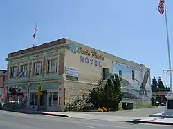 The majority of the small businesses in town can be found on Guadalupe Street. For half a century, the city was home to the famous Far Western Tavern (formerly the Palace Hotel), until it relocated to Old Town Orcutt in 2012, following the death of founder and philanthropist Clarence Minetti.[27][28][29] The Far Western building has since been donated to the Guadalupe-Nipomo Dunes Center.[30] It was placed on the state's Register of Historic Resources in 2019.[31]