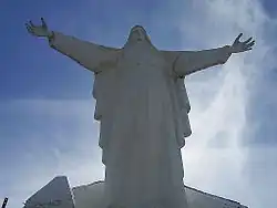 The first hermitage on Guadalupe Hill was built in 1656 and blessed during a pilgrimage on September 8 of that year.[2] The hermitage was destroyed by the earthquakes of 1743, 1785 and 1827. During the presidency of Tomás Cipriano de Mosquera, the hermitage was reconstructed, but affected again by the 1917 Bogotá earthquake.[14] The hermitage was rebuilt in 1945 by Jorge Murcia Riaño and blessed by archbishop Ismael Perdomo. In 1946, the 15 metres (49 ft) high statue of the Virgin of Guadalupe, sculpted by Gustavo Arcila Uribe, was constructed on top of Guadalupe Hill.[2] In 1967, the chapel and road leading up to it were constructed.[2][15]