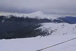 Between 1,400 and 2,000 m, the average annual temperature is 6-9 °C, with a summer high of 25 °C and winter low of -8 °C. Average annual precipitation increases with the height to 700–1,300 mm, again primarily during the non-summer season in the form of snow, but between December and April. Much of the snow remains on the ground for the duration of the winter, especially on the range's north slope.