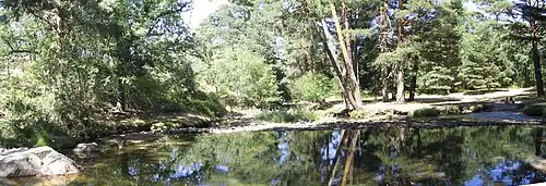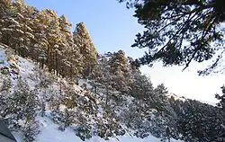 Like the Fuenfría, the Valsaín valley is also covered by a well-preserved pine tree woodland, considered the best of the Guadarramas. It is a wide, sloped valley running in a north to south direction, having a length of approximately 10 km, an average width of 5 km, and is located between the mountains, Mujer Muerta and the bulk of Peñalara. On its lower slopes is the municipality of Valsain, named after the valley. In the heart of the valley, amidst the pine and oak groves, there are three separate recreation centers, each with areas for parking. Nearby these areas are a number of human-made Eresma river dams that create small pools suitable for bathing in the summer. Several paths begin in the recreation area that crisscross the whole of the woodsy valley.