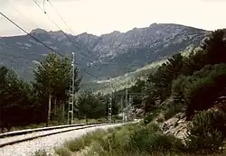 Mountain railway pass, with the Siete Picos (Seven Peaks) in the background.