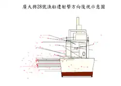 The Guang Da Xing No. 28 incident was a fatal shooting incident that occurred on 9 May 2013 involving the 15-ton Taiwanese fishing boat Guang Da Xing No. 28 and the 90-ton Philippine Coast Guard patrol boat Maritime Control Surveillance 3001,[2] resulting in the death of a 65-year old Taiwanese fisherman Hung Shih-cheng (洪石成) by gunfire from the Philippine vessel.[3][4]