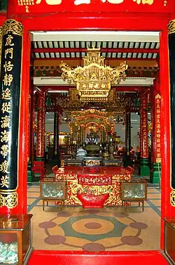 The temple was founded by the Cantonese community of Yangon in 1823.[1][2][3] It was destroyed by a fire in December 1855, and subsequently rebuilt between 1864 and 1868, with two additional brick buildings to the side built in 1872.[2][3][1]