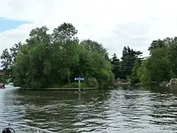 Guards Club Island, also known as Bucks Ait or bucks' eyot is an island in the River Thames connected by footbridge by to Maidenhead, Berkshire accommodating a pier adjoining the Sounding Arch part of the railway bridge which was built in 1838 to designs by Brunel. The thin small island is connected to Guards Club Park by a low cast-iron and wood footbridge which blocks the near channel (backwater) to boat navigation apart from kayaks. The island gets its alternative name from eel bucks[1] from which the footbridge was adapted in 1865 to allow access to its Guards Club Boathouse (since demolished).